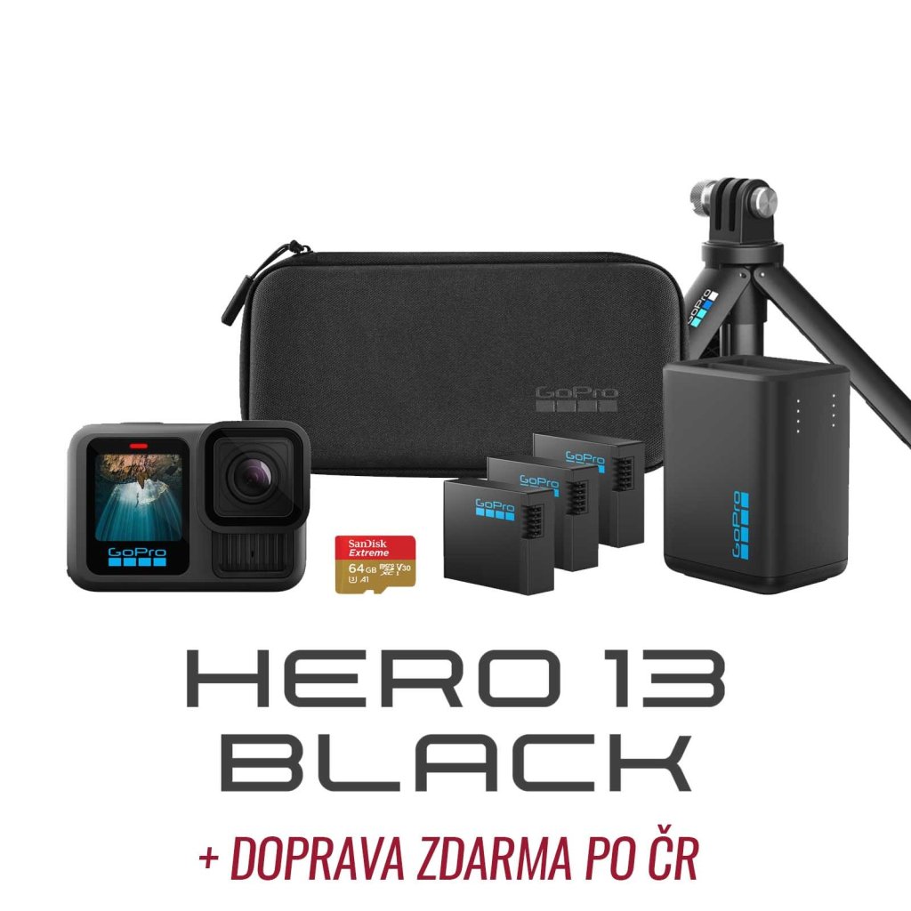 Tento sada obsahuje kameru HERO13 Black, duální nabíječkou baterií, tři Enduro baterie, 64 GB SD kartu a pouzdro na kameru. Kromě nejlepšího videa ve své třídě v rozlišení 5.3K60 a legendární odolnosti je HERO13 Black kompatibilní s objektivy řady HB (prodejné samostatně). Výkonná baterie Enduro poskytuje neuvěřitelnou dobu záznamu za všech povětrnostních podmínek, zatímco modernizované vyklápěcí nožičky poskytují větší flexibilitu při uchycení než kterákoli předchozí kamera GoPro. A díky základním funkcím, jako je stabilizace videa HyperSmooth 6.0, automatická highlight videa, nabízí HERO13 Black neuvěřitelnou kombinaci špičkových technologií a kreativních možností.