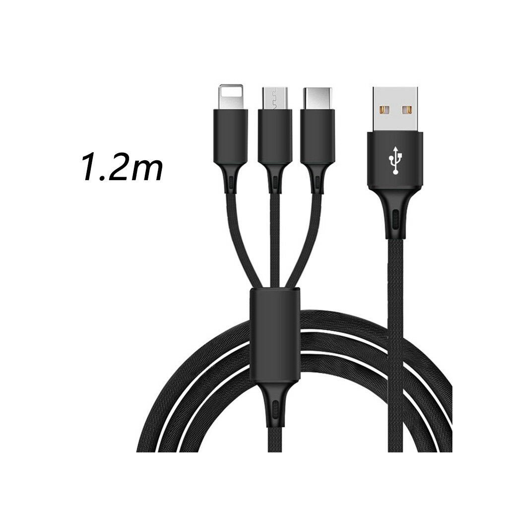 Multifunkční kabel USB 3v1 -USB-A do USB-C - micro USB - Lightning - délka 1.2 m