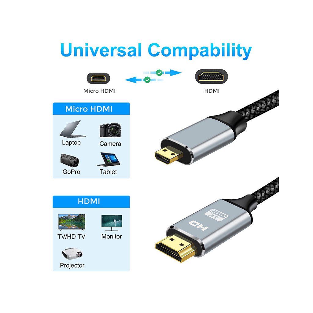 - Kabel micro HDMI 4K@60Hz splňuje nejnovější verzi standardu HDMI 2.0, podporuje 4K@60Hz, 3D HDR jasně zobrazuje každou částici a přesně zpracovává každý zdroj signálu.